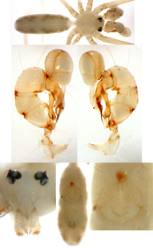 Bonita, BA, Br11-64) Psilochorus n.sp. Br15-173 (photos: Santa Terezinha, BA, Br15-173) Psilochorus n.sp. Br10-36 (photos: Vargem Alta, ES, Br10-36) Psilochorus n.sp. Br03-17 (photos: Ubatuba, SP, Br03-17) Psilochorus itaguyrussu (TL: SP, Campos do Jordao, Gruta dos Crioulos) Psilochorus ybytyriguara (TL: Paranapiacaba, Est. Biol. Alto da Serra) |