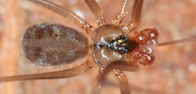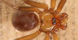 | Large dark species without median cheliceral apophyses and epigynal pocket | |