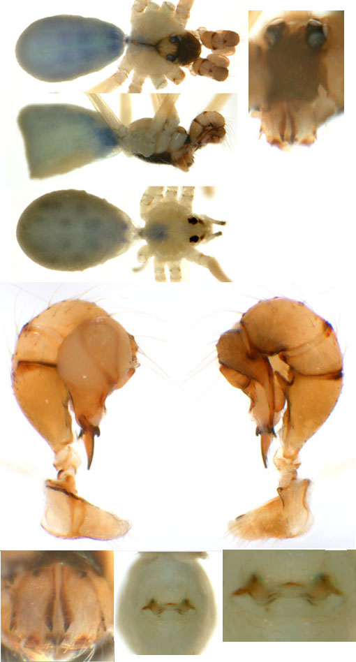 South (SC, PR, SP, RJ) Carapoia voltavelha (photos: Volta Velha, SC, Br10-9) [same species(?) form P.N. do Itajaí, SC, Br14-27] Carapoia genitalis (photos: Paranapiacaba, SP, Br03-33) Carapoia ubatuba (photos: Ubatuba, SP, types ZFMK) Carapoia macacu (photos: Guapiaçú, RJ, Br09-5) Carapoia divisa (photos: Santa Maria Madalena, RJ, Br10-14) Center (ES, BA) Carapoia una (photos: Res. Biol do Una, BA, Br11-83) Carapoia rheimsae (photos: Res. Biol do Una, BA, Br11-93) Carapoia brescoviti (photos: Res. Biol do Una, BA, Br11-85) Carapoia nairae (photos: Vargem Alta, ES, Br10-34) Carapoia capixaba (photos: Sooretama, ES, Br11-14) Carapoia gracilis (photos: Pau Brasil, BA, Br11-59) Carapoia zumbii (photos: Serra Bonita, BA, Br11-65) Carapoia dandarae (photos: Serra Bonita, BA, Br11-67) Carapoia n.sp. Br11-73 (photos: Serra Bonita, BA, Br11-73) Carapoia marceloi (photos: Reserva Michelin, BA, Br11-96) Carapoia carybei (photos: São João, BA, Br11-116) Carapoia jiboia (photos: Sta Terezinha, BA, Br15-3) Carapoia carvalhoi (photos: Sta Terezinha, BA, Br15-7) Carapoia maculata (photos: Morro de Pedra, BA, Br15-15/16) Carapoia exigua (photos: Morro de Pedra, BA, Br15-18) North (SE, AL, PE, PB, RN) Carapoia crasto (photos: Mata do Crasto, SE, Br15-19) Carapoia alagoas (photos: Usina Serra Grande, AL, Br15-72/73) Carapoia abdita (photos: nr. Bonito, PE, Br15-88) Carapoia saltinho (photos: Saltinho, PE, Br15-92) Carapoia septentrionalis (photos: Cafundó, PB, Br15-125) Carapoia djavani (photos: Pedra Talhada, AL, Br15-60) Carapoia agilis (photos: nr. Bonito, PE, Br15-79) Carapoia pulchra (photos: Pedra Talhada, AL, Br15-62/63) Carapoia suassunai (photos: Mata de Pipa, RN, Br15-145/146) Carapoia bispina (photos: nr. Bonito, PE, Br15-78) |