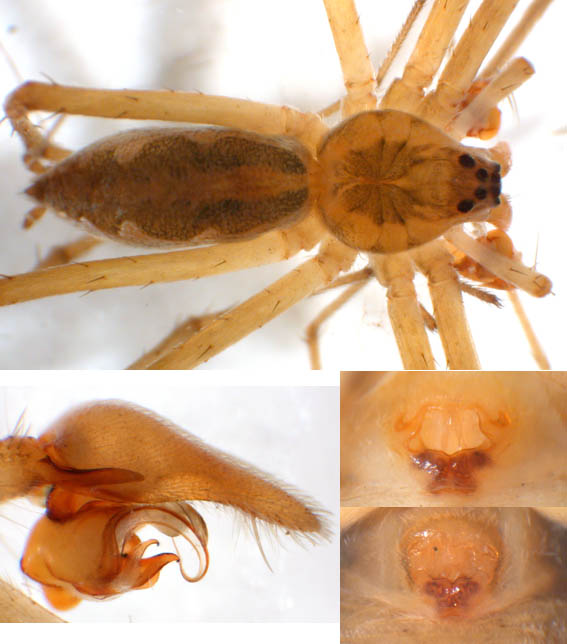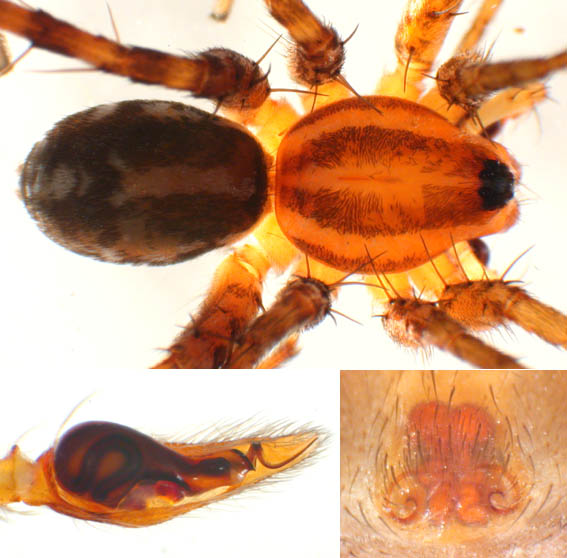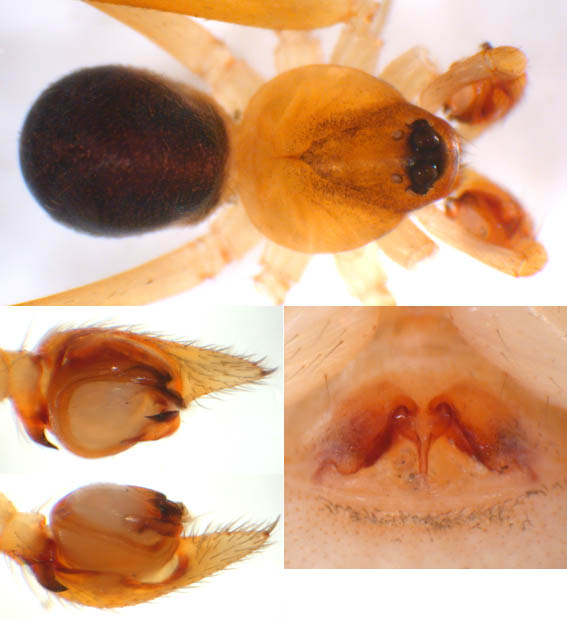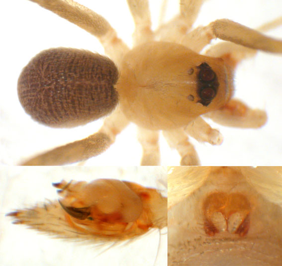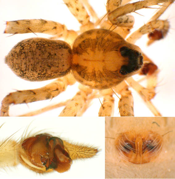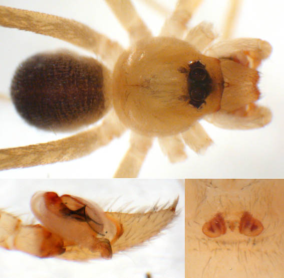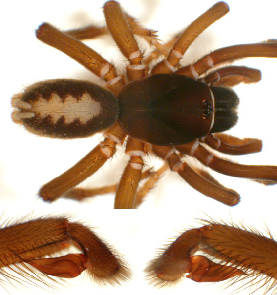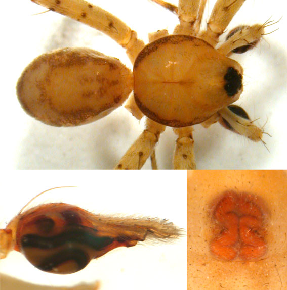 | Hahniidae sp.1 Ivory Coast, Riv. Bagoé / Guingéréni (9°32’N, 6°36’W) Burkina Faso, 4 km NE Dérégoué [10°46’N, 4°04’W] ![]() |