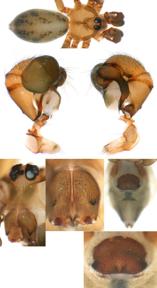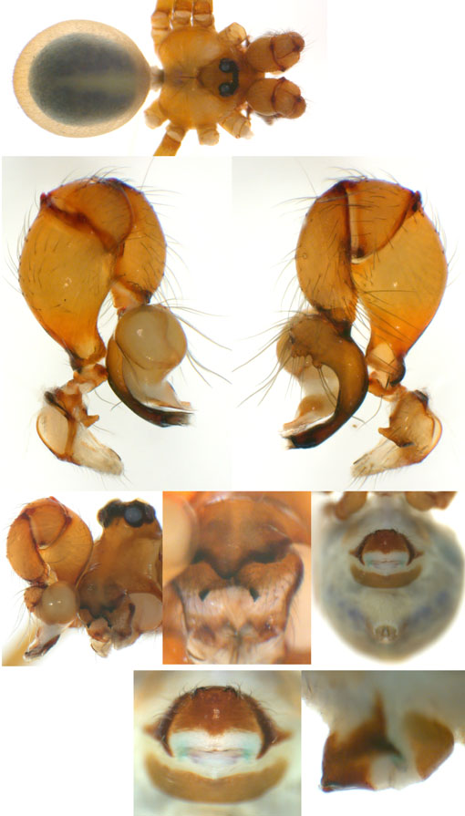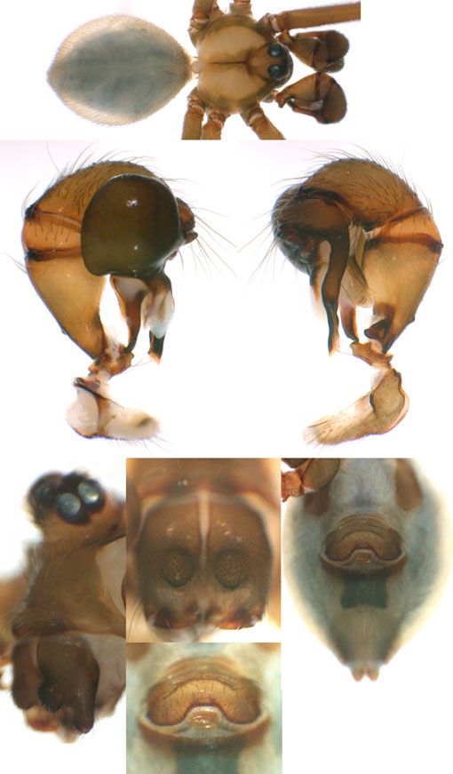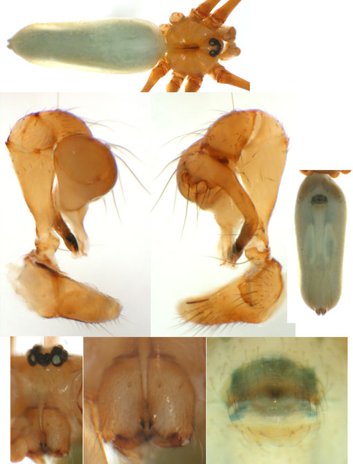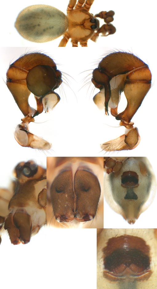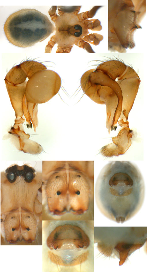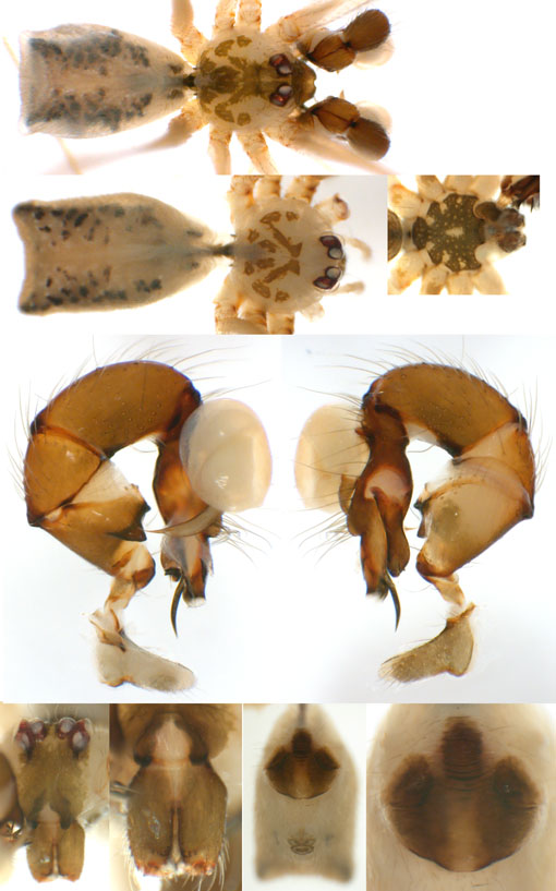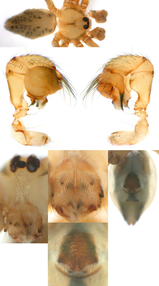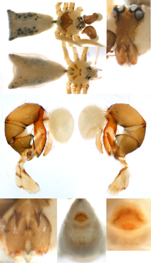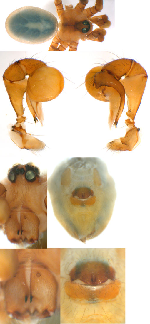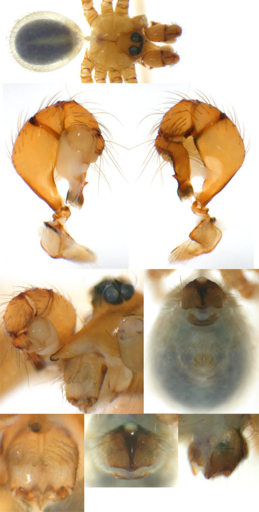 South (SC, PR, SP, RJ) Carapoia voltavelha (photos: Volta Velha, SC, Br10-9) [same species(?) form P.N. do Itajaí, SC, Br14-27] Carapoia genitalis (photos: Paranapiacaba, SP, Br03-33) Carapoia ubatuba (photos: Ubatuba, SP, types ZFMK) Carapoia macacu (photos: Guapiaçú, RJ, Br09-5) Carapoia divisa (photos: Santa Maria Madalena, RJ, Br10-14) Center (ES, BA) Carapoia una (photos: Res. Biol do Una, BA, Br11-83) Carapoia rheimsae (photos: Res. Biol do Una, BA, Br11-93) Carapoia brescoviti (photos: Res. Biol do Una, BA, Br11-85) Carapoia nairae (photos: Vargem Alta, ES, Br10-34) Carapoia capixaba (photos: Sooretama, ES, Br11-14) Carapoia gracilis (photos: Pau Brasil, BA, Br11-59) Carapoia zumbii (photos: Serra Bonita, BA, Br11-65) Carapoia dandarae (photos: Serra Bonita, BA, Br11-67) Carapoia n.sp. Br11-73 (photos: Serra Bonita, BA, Br11-73) Carapoia marceloi (photos: Reserva Michelin, BA, Br11-96) Carapoia carybei (photos: São João, BA, Br11-116) Carapoia jiboia (photos: Sta Terezinha, BA, Br15-3) Carapoia carvalhoi (photos: Sta Terezinha, BA, Br15-7) Carapoia maculata (photos: Morro de Pedra, BA, Br15-15/16) Carapoia exigua (photos: Morro de Pedra, BA, Br15-18) North (SE, AL, PE, PB, RN) Carapoia crasto (photos: Mata do Crasto, SE, Br15-19) Carapoia alagoas (photos: Usina Serra Grande, AL, Br15-72/73) Carapoia abdita (photos: nr. Bonito, PE, Br15-88) Carapoia saltinho (photos: Saltinho, PE, Br15-92) Carapoia septentrionalis (photos: Cafundó, PB, Br15-125) Carapoia djavani (photos: Pedra Talhada, AL, Br15-60) Carapoia agilis (photos: nr. Bonito, PE, Br15-79) Carapoia pulchra (photos: Pedra Talhada, AL, Br15-62/63) Carapoia suassunai (photos: Mata de Pipa, RN, Br15-145/146) Carapoia bispina (photos: nr. Bonito, PE, Br15-78) |