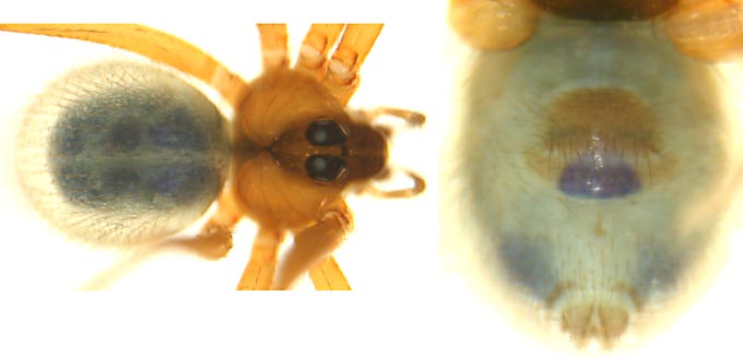 | Large dark species without median cheliceral apophyses and epigynal pocket | |