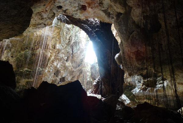 The last days we spent searching for cave-dwelling Metagonia and Micropholcus in western Rio Grande do Norte. Gruta do Crotes (below) was my favorite, but we found the spiders in almost any cave we visited. |