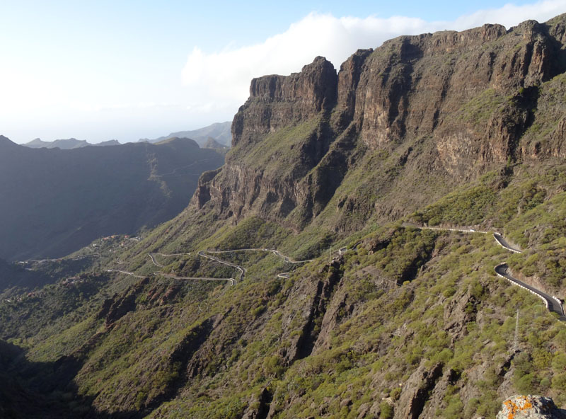 of Tenerife. The idea was to obtain fresh material for molecular work rather than to find new species. I thus concentrated on type localities all over the island, and managed to visit eight of them, including spectacular barrancos (Barranco del Infierno, Barranco de Masca), beautiful forests (Monte de Agua, Esperanza Forest, Mercedes Forest), and lava tube caves (Cueva del Viento, Cueva los Roques, Cueva de la Puerta). ![]() Magnificent landscape near Masca. |
