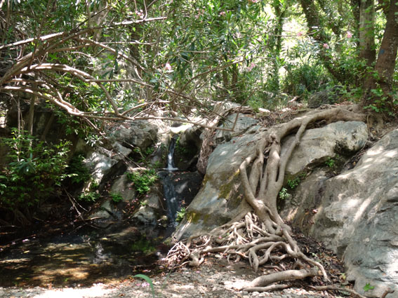 suitable habitat just like the many caves on the island. Ten species of pholcids are known from Crete, and some of them have not been found in any other place. I visited some of the type localities and was lucky enough to find eight of the ten species. The material has been included in revisions of Hoplopholcus (Huber 2020) and Stygopholcus (Huber et al. 2021). ![]() Forested gorge between Exo Mouliana and Richtis Waterfall (above), the type locality of Hoplopholcus minous (below). ![]() ![]() Milatos Cave (above), type locality of Hoplopholcus minotaurinus (below). ![]() ![]() The endemic Cretan Pholcus creticus (above) and the more widespread Stygopholcus photophilus (below). ![]() ![]() Ruins of Voila (above). As almost everywhere on Crete, there is Spermophora senoculata on the walls (below). ![]() ![]() Goat enjoying the view down into the Lassithi high plateau. |