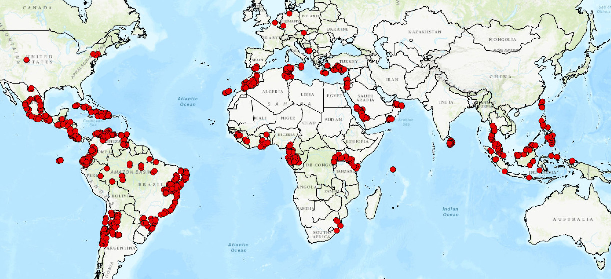 My Pholcidae collecting localities (~1200, in 49 countries); below are brief summaries of each trip.
