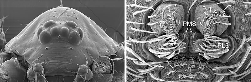 characters that require SEM (spinnerets; epiandrous spigots; tarsal
