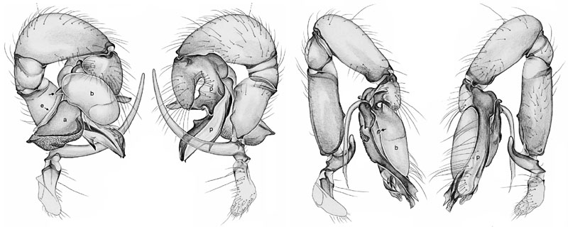 ![]() Male pedipalps of Pholcus bukittimah from Singapore (left) and of Pholcus bario from Sarawak (right). |