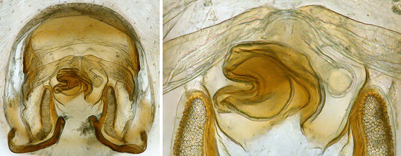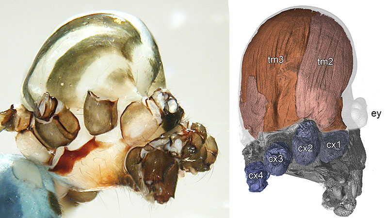 genus from Ecuador.![]() A molecular phylogenetic analysis of Mecolaesthus and related genera greatly expands the taxon sampling compared to previous analyses (from nine to 46 species representing the “Venezuelan clade” of genera) but remains ambiguous regarding the monophyly of Mecolaesthus. The new species from Ecuador are part of an Amazonian-West Indian clade. Whether this clade is sister to ‘true’ (northern Venezuelan) Mecolaesthus or not remains unclear. The two clades occupy different major Neotropical biogeographic regions. In addition, we present first µ-CT data of the unique prosoma ‘inflation’, showing that these ‘inflations’ are tightly packed with muscles inserted at the leg coxae, mainly of legs 2 and 3. Male (but not female) leg length is negatively correlated with body size, which is highly unusual in Pholcidae. We predict that male-male fights in Mecolaesthus rely on powerful leg movements of legs 2 and 3 rather than on using legs 1 to assess the opponent’s body size. ![]() Finally, we document structural genital asymmetry in females of three of the four new species and in M. putumayo Huber, 2000 (of which the female is newly described). This constitutes the fourth known case of structural genital asymmetry in Pholcidae. ![]() |