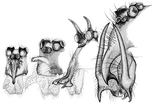 | This paper gives redescriptions of all nine previously known species and descriptions of 35 new species. Smeringopina is largely restricted to the tropical forests of West and Central Africa. It includes both large species that build their domed sheet-webs in protected spaces near the ground, and small (probably derived) litter-dwelling species. ![]() ![]() |